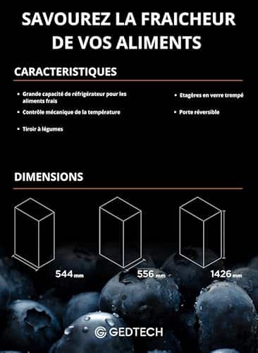 Adoptez le réfrigérateur EDTECH GSP230BL Black pour un stockage efficace et un design qui s’intègre parfaitement à votre intérieur !