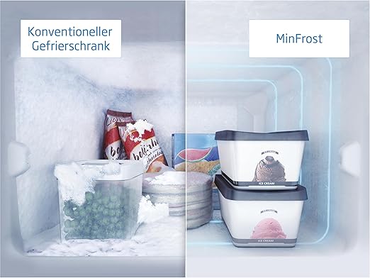 Grâce à la technologie MinFrost 🧊, l’accumulation de givre est fortement réduite dans la partie congélateur, minimisant les besoins de dégivrage et maintenant des performances optimales. Le compresseur ProSmart Inverter ⚙️ ajuste intelligemment sa vitesse pour garantir une température stable, réduire les nuisances sonores et maîtriser la consommation énergétique.
